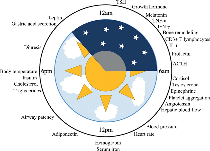 Circadian rhythm can be summed up as wake when the sun rises, get ready for bed when the sun sets. This is true daily and seasonally; you will need less sleep during the summer and more during winter. The fewer interruptions to this rhythm, the more in tune you will be.