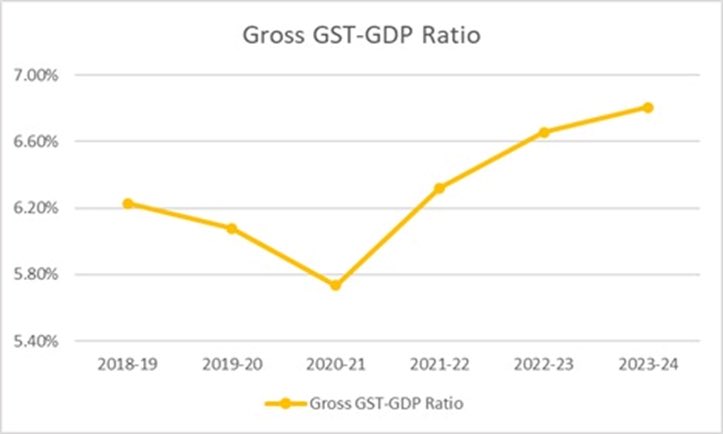 - Despite the GST rate being less than the prescribed Revenue Neutral Rate and COVID-19 affecting the revenues, GST collections (as a % of GDP) have now reached the levels they were before GST (both net and gross). This demonstrates that the Centre & States, collectively, through better tax administration, are able to collect the same revenue with a lower burden on our taxpayers.