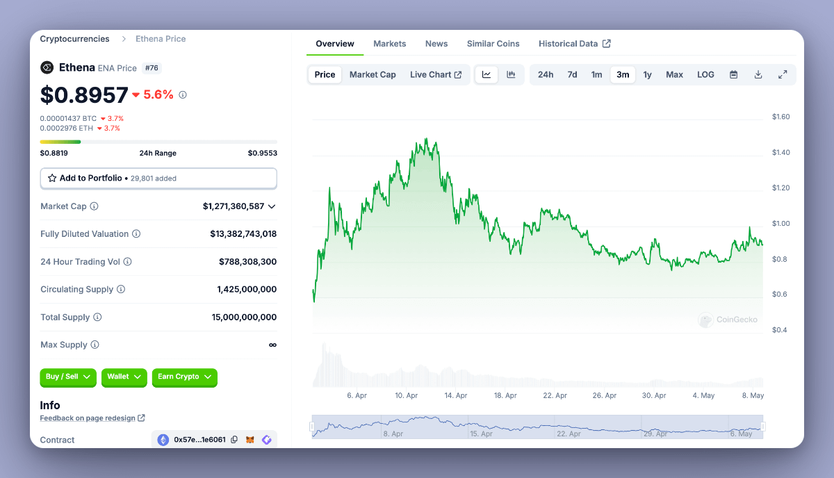 Ethena is a decentralized stablecoin protocol that provides a synthetic dollar for DeFi and Web3 applications.