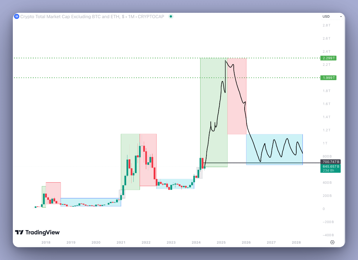 That's why I predict that during the altseason of 2024-2025, the all-time high for TOTAL3 (altcoin index) could hit $2-2.3 trillion.