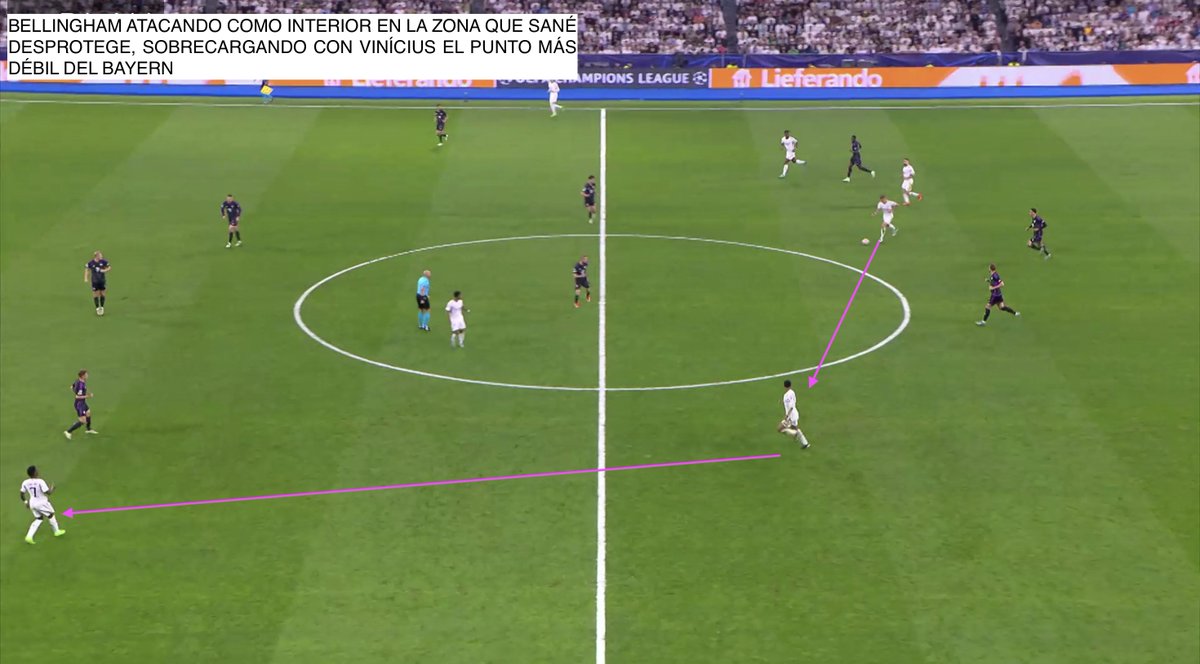 En el 1T, Rodrygo estuvo más lejos, cayendo en la diestra. El RM dominaba pero no hundía tanto. No conquistaba. Carlo le acercó a Vinícius y Bellingham y el Bayern, que defendía relativamente cómodo, empezó a dudar.