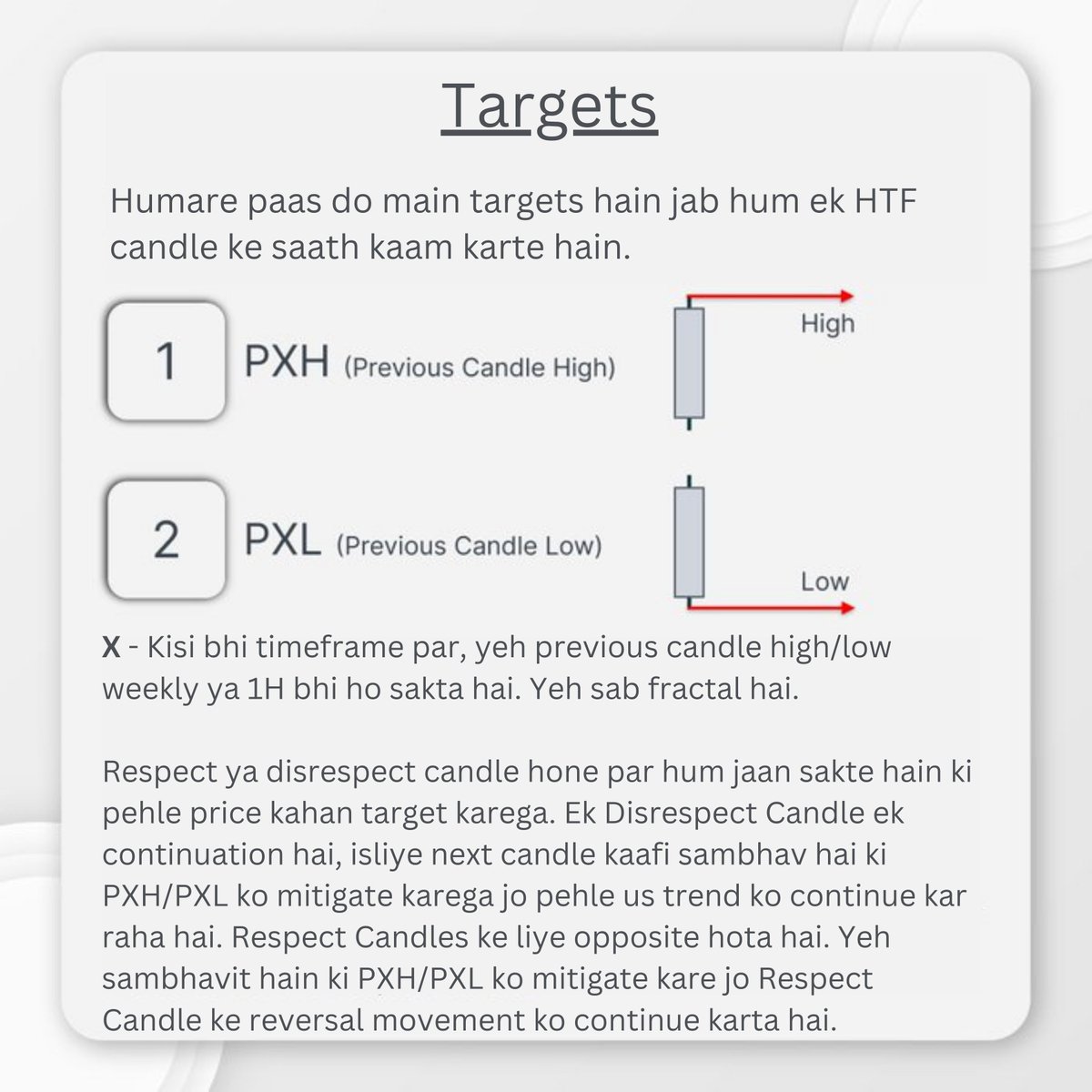 4 - Once you have identified a Disrespect or Respect Candle on the Higher Timeframe we can look to find the easiest first target, this is where PXH/PXL comes in.