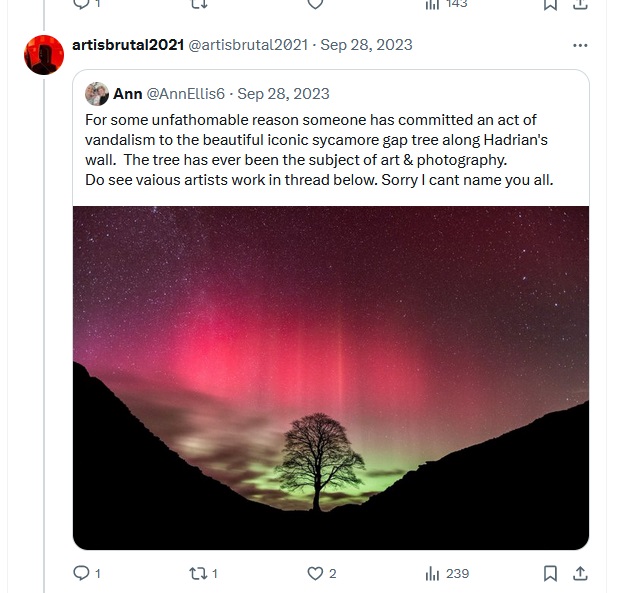 has presented The King – their Patron -w/ the first seedling grown from seed collected from the Sycamore Gap tree"