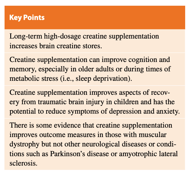 I had previously only heard of and used creatine for the purposes of exercise, such as to improve muscle mass and performance. However, I found several studies using creatine in the setting of sleep deprivation to improve cognitive performance. I also found a nice recent review on this in Sports Medicine /2