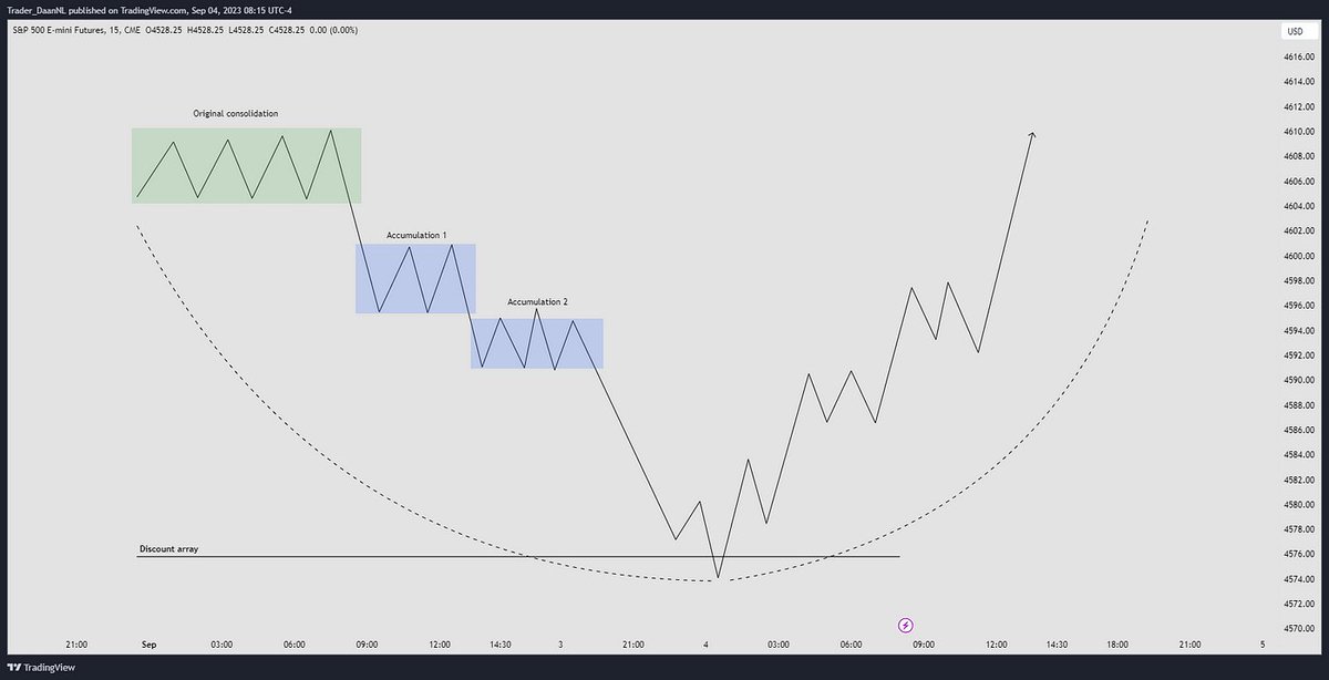 Daily Time Frame 1. Candle Body Closures 1.1 Above Previous Day Low 1.2 Above Consequent Encroachment of Daily BISI [+] 2. Sweep of External Range Lows with SMT 3. Confirmation offered upon inversion of Daily SIBI [-]