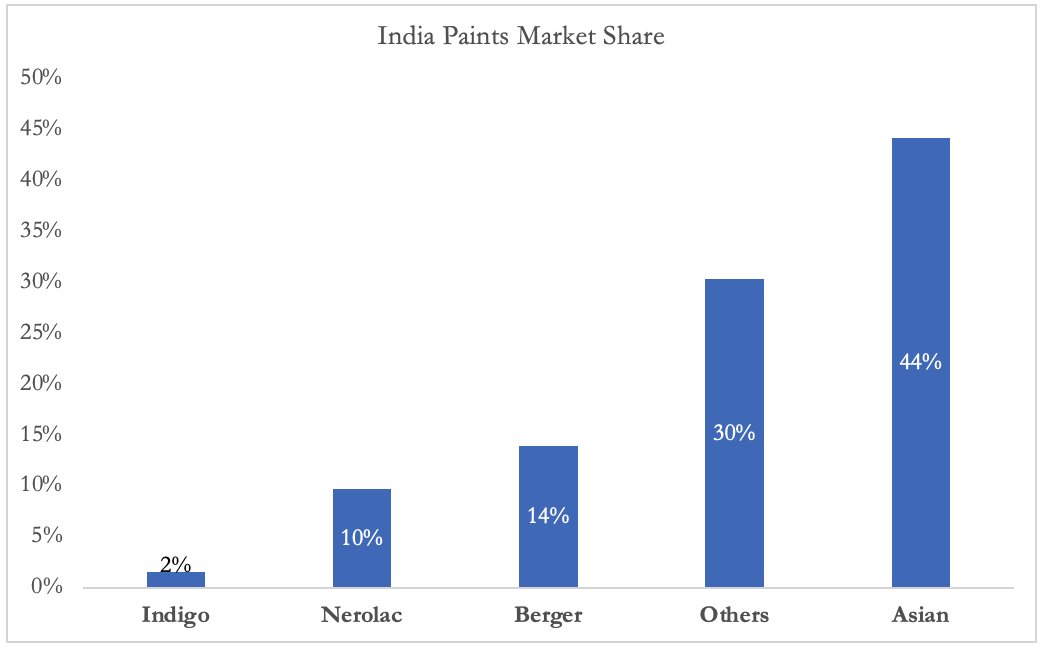 Asian Paints has 44% of the Indian paints market and it has maintained this stranglehold for over 50 years ever since their founder found an opportunity when paint imports were banned by govt of India in the pre-independence era.. but this will be put to an acid-test.