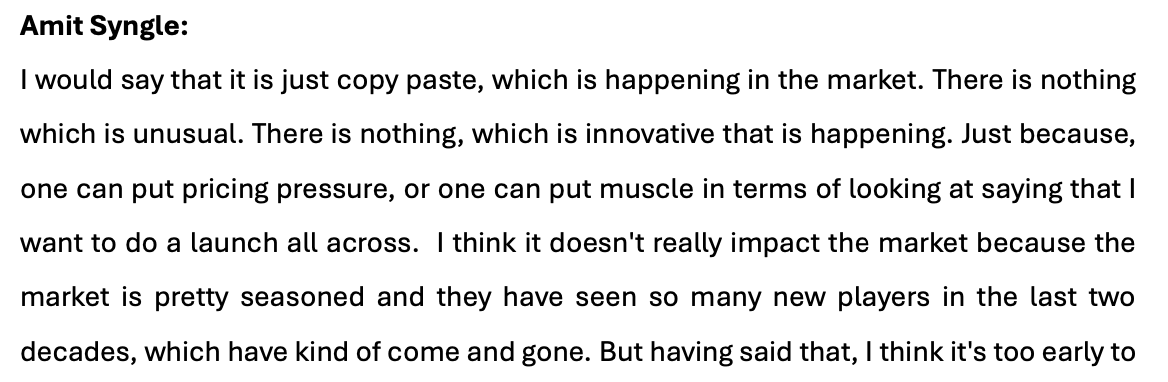 So, here's a piece of unsolicited advise to the Birlas - Go slow. This is not a race that can be won in 3 years.
