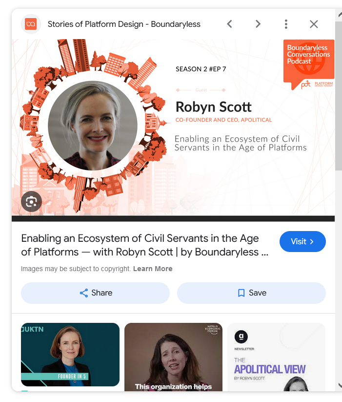 Alarcon : " Apolitical Foundation mapped and convened the PLI space and expanded to Peru and Dach; F1RST launched in partnership with the Stockholm School of Economics .."