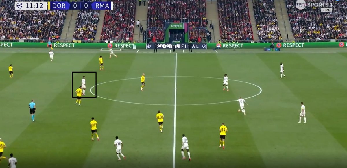 Jude tiende a preferir a que la defensa se extienda a través de la amplitud y posteriormente encontrar un pase interno. En cierto punto no está mal, pero puede mejorar desde otro lado que no sea siempre la misma idea; ampliar, mover la defensa y atacar a ese espacio.