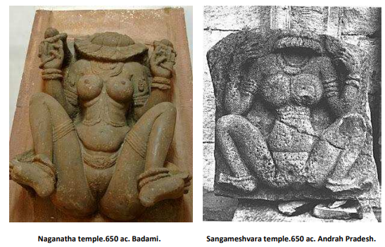 Devi, the Great Mother Goddess of creation of ancient Vedic times, in Her form as Lajja Gauri, is also known as Aditi, AdyaShakti, Renuka wife of sage Jamadagni, who is worshipped for fertility as Matangi and Yallamma(everybody's mother), Kotari, Kotavi (a nude folk goddess), KottaMahika, Kotmai, and many other names.She is the most ancient Goddess form in the religious complex that is today referred to as Sanatan Dharma.