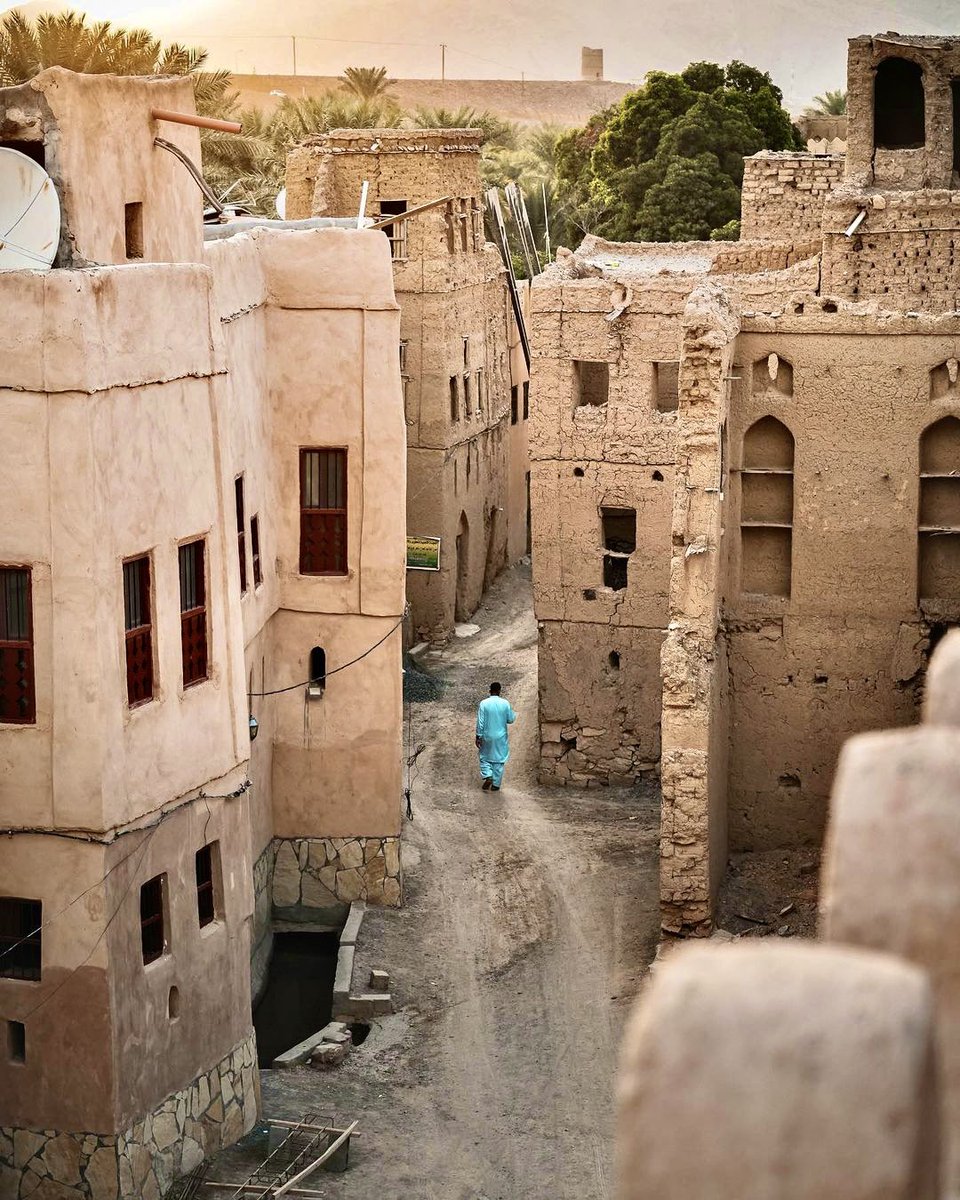 4/ Oman was not modernized until the 1970s; its traditional architecture has survived better than in other parts of the Middle East. In small villages like Al Hamra, adobe homes as much as 400 years old, made from mud and bricks with roofs lined by palm trees are still visible