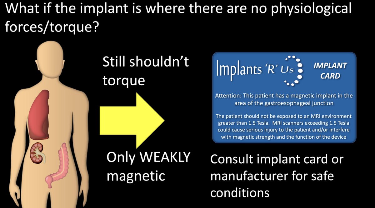 14/Torque can be a problem. However, if the device is in anything w/motion (vessel w/flowing blood, beating heart, moving bones), torque from physiologic motion is stronger than any from the magnet. So, if it stays in place w/natural forces, it won’t be moved by the magnet.