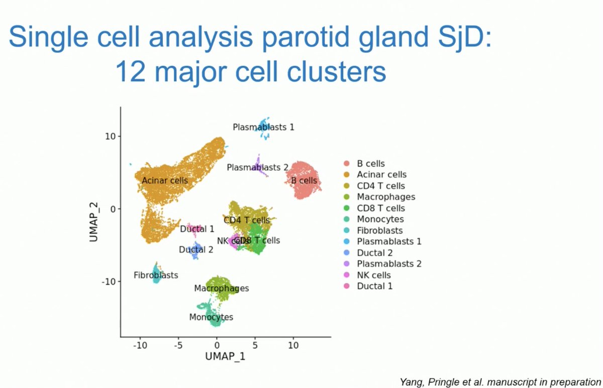 🔬scRNAseq analysis revealed diverse cell types, including acinar cells (responsible for saliva production), immune cells, and fibroblasts