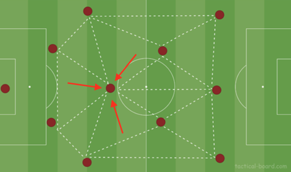 Would vertical passes to the lone-6 in build-up conflict with these other, but equally effective intentions?