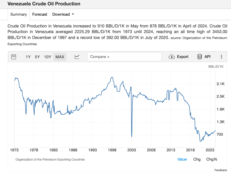 If that -70% drop in the price of oil from 2014-2016 hadn't happened, we would likely be hearing today about how Venezuela's two decades of high social spending from oil prosperity proves that socialism works. Which would also be wrong.