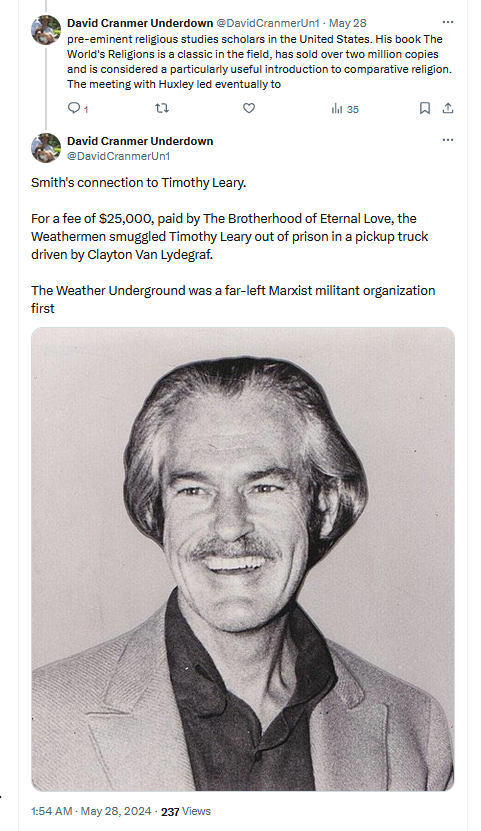 " paid by The Brotherhood of Eternal Love, the Weathermen smuggled Leary out of prison in a pickup truck driven by Clayton Van Lydegraf."
