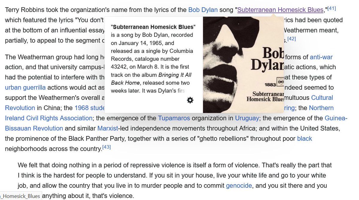 "That Dylan line was also the title of a position paper distributed at an SDS convention in Chicago on June 18, 1969. ."