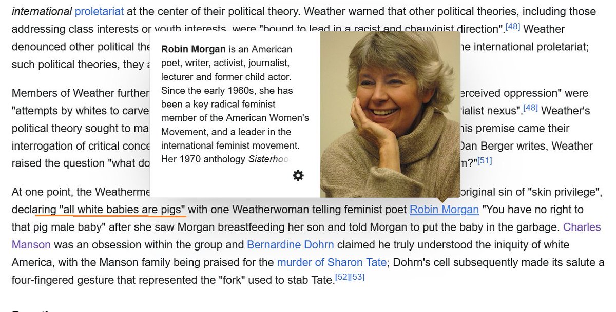 "Charles Manson was an obsession within the group and Bernardine Dohrn claimed he truly understood the iniquity of white America, with the Manson family being praised for the murder of Sharon Tate."
