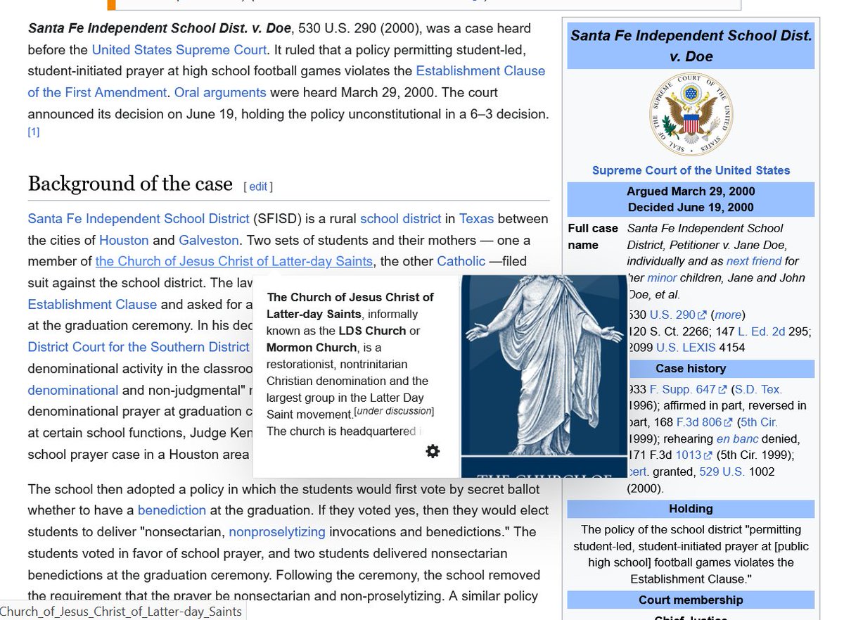 "Writing for the majority, Justice Hugo Black wrote that recitation of a government-written prayer by school children was "a practice wholly inconsistent with the Establishment Clause""
