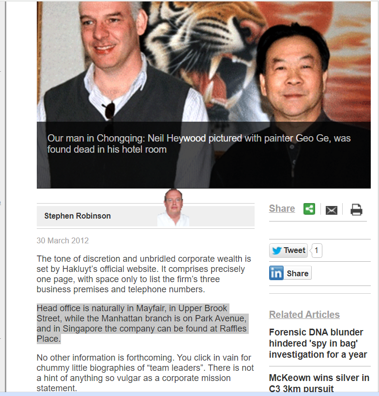 "MI6, a death in China and the very secretive Mayfair company full of spooks.. Head office is naturally in Mayfair, in Upper Brook Street, while the Manhattan branch is on Park Avenue, and in Singapore the company can be found at Raffles Place." 🤔🎶