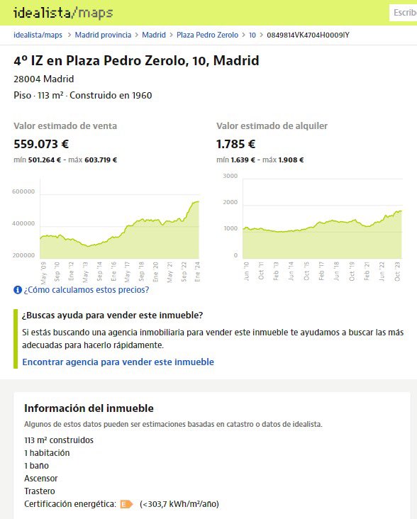 Si tienes el catastro de la vivienda o la dirección exacta puedes ver un rango de su valor de venta y de alquiler, lo que puede ayudar bastante.