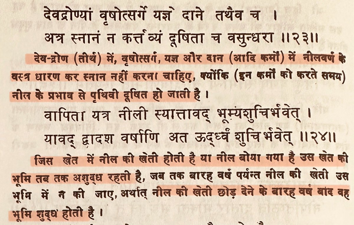 ४. आज भी जीन्स इत्यादि में घातक नील प्रयोग होती है, जिससे नदियों का जल प्रदूषित होता है और मछलियाँ मरती हैं।