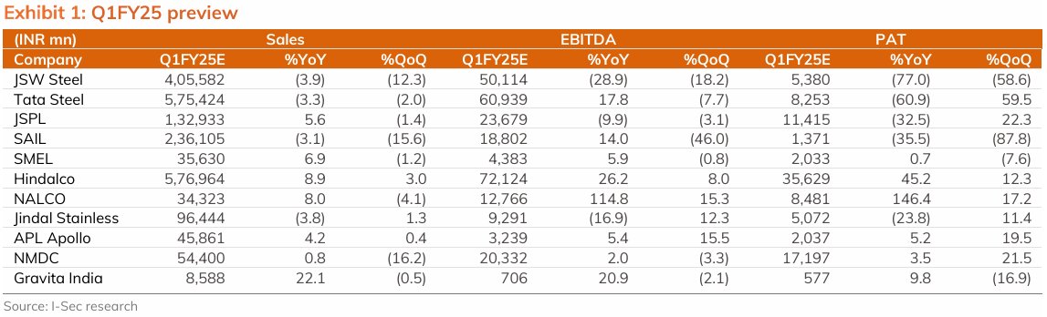 Metals: Q1FY25 preview - A 🧵