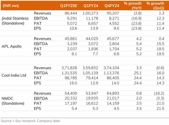 As Q1FY25 unfolds, the metal sector stands at a pivotal juncture. The past few days have looked bleak. Despite this, we expect Q1FY25 to remain stable for most companies under our coverage.