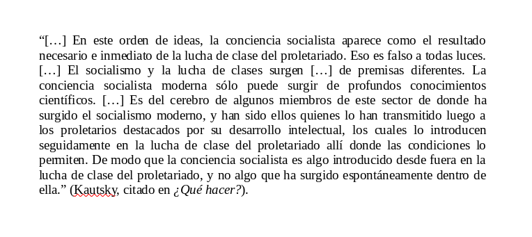 Tomar como referencia primera el movimiento espontáneo es caer en el espontaneísmo. Y lo es también, aunque esa referencia primera sea la lucha contra la corriente que espontáneamente domina en la vanguardia teórica en un momento dado.