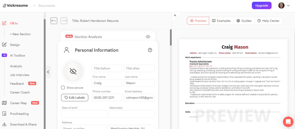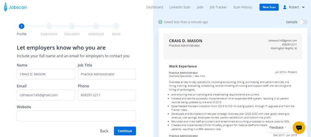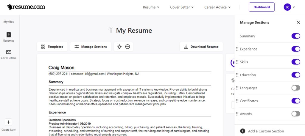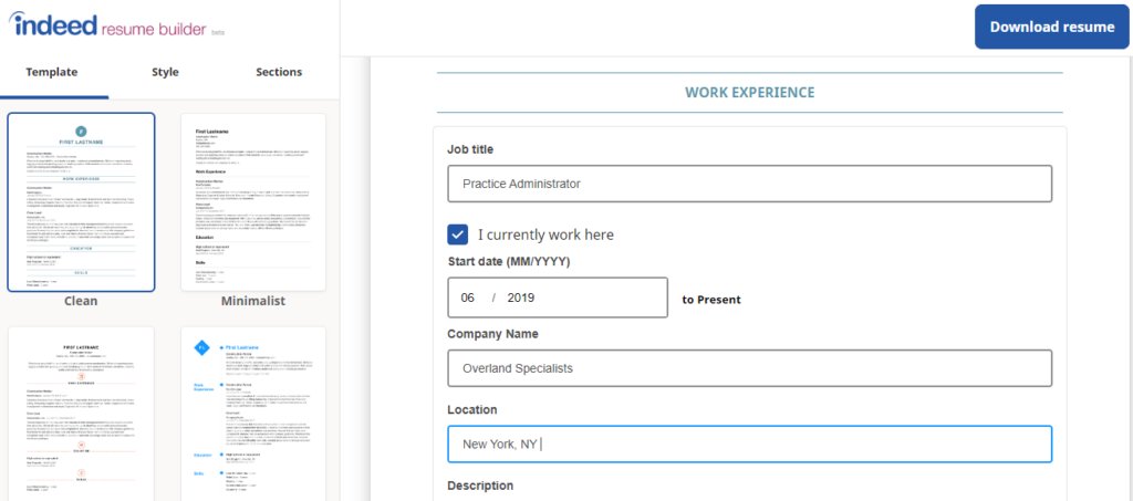 The builder allows you to easily visualize your resume as you build it.