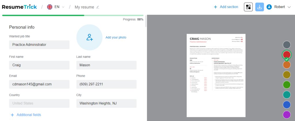 100% free resume builder to make, save and print a professional resume in minutes. Make applying fas...