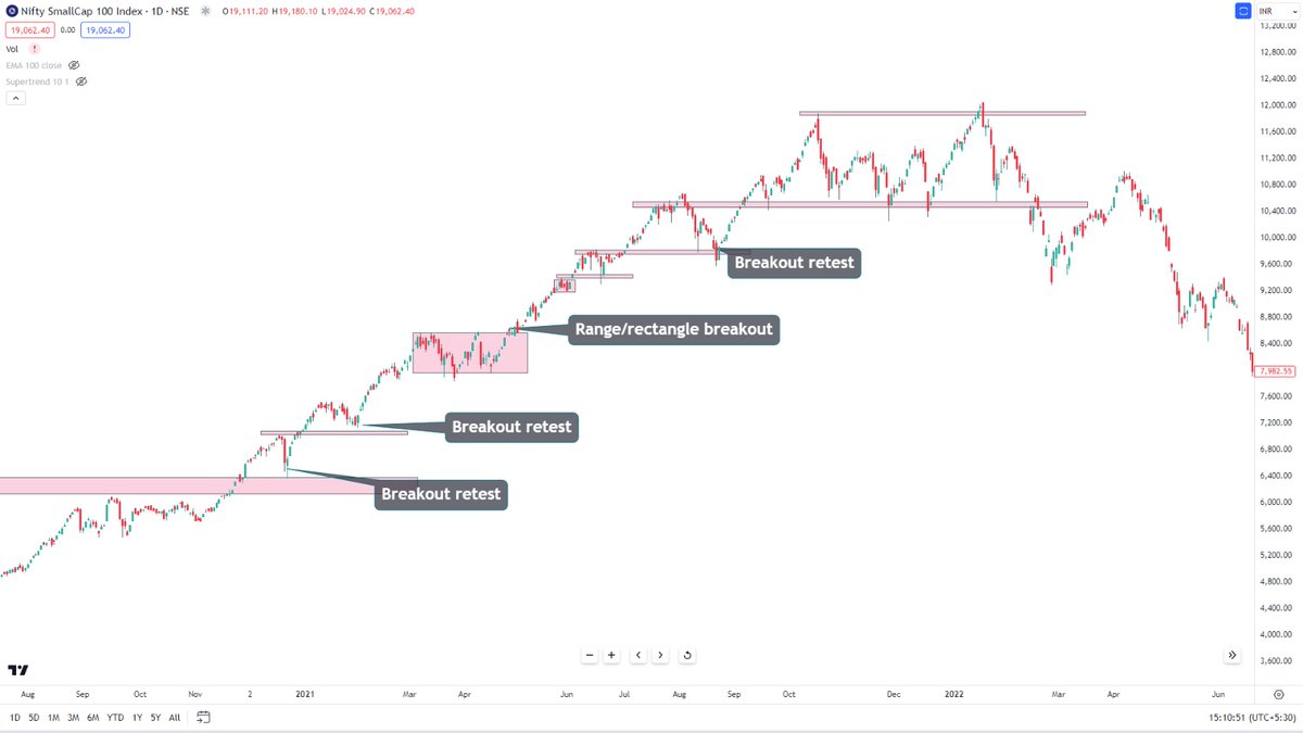 The movement of smallcap and midcap indices is very different from that of Nifty and BanNifty as they tend to move rapidly in both directions. They easily give breakouts and do not struggle after a 2-3% move, especially in the type of bull market we have witnessed since 2020.(11/