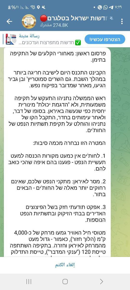 2โฃIn the end, after confrontations in the room, #Netanyahu's line was accepted and they decided to attack the #Houthis' oil infrastructure.