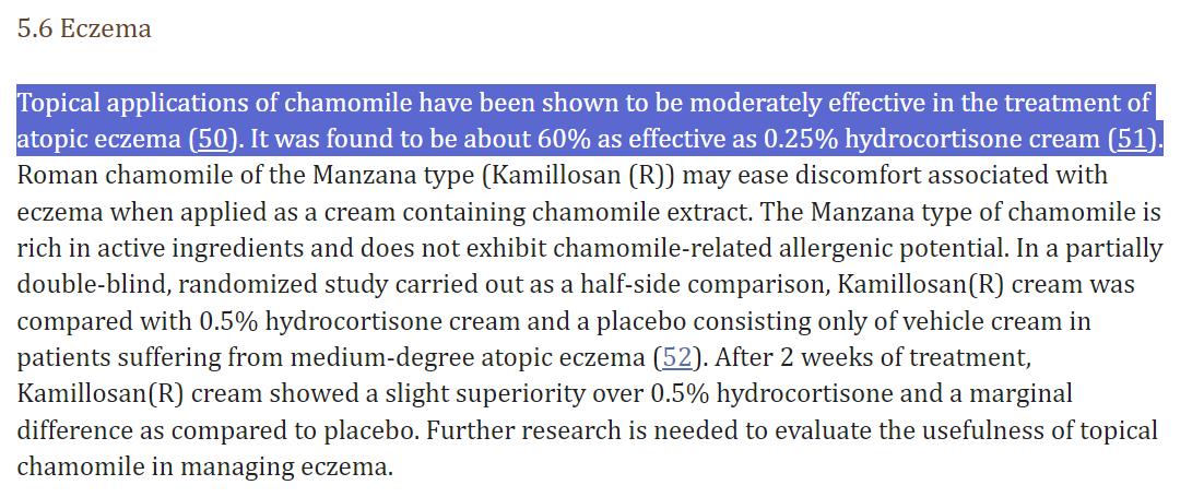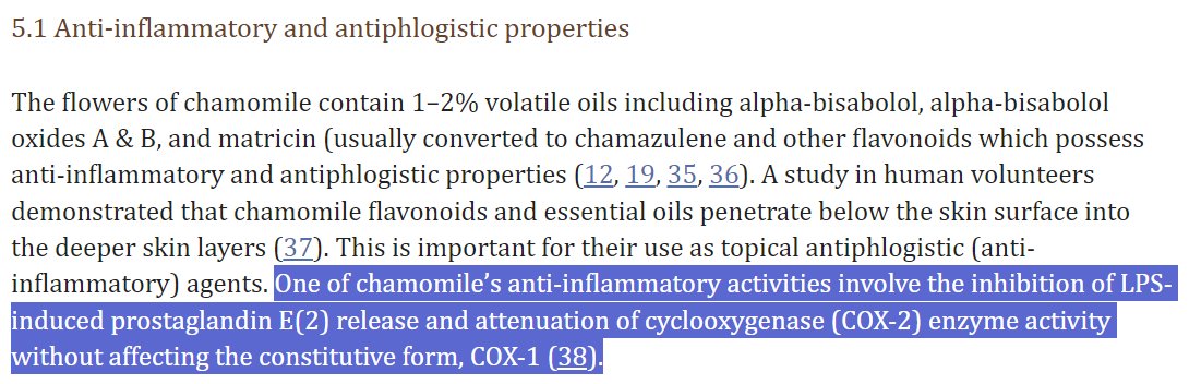 The antioxidants in chamomile, especially quercetin, help protect the skin from environmental damage and oxidative stress ->