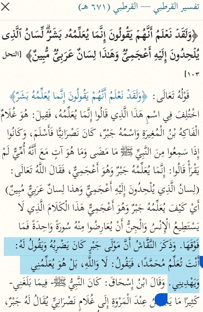 @Khometmibro بمعنى ما تلحدون إليه لن يسعفكم لأنه أعجمي من المستحيل أن يأتي بمثل القرآن الكريم وأنتم كعرب أقحاح فشلتم في ذلك. أيضاً في الروايات الحديثية هذا الغلام قال بأنه هو من يتعلم من النبي ﷺ و أسلم بعدها.