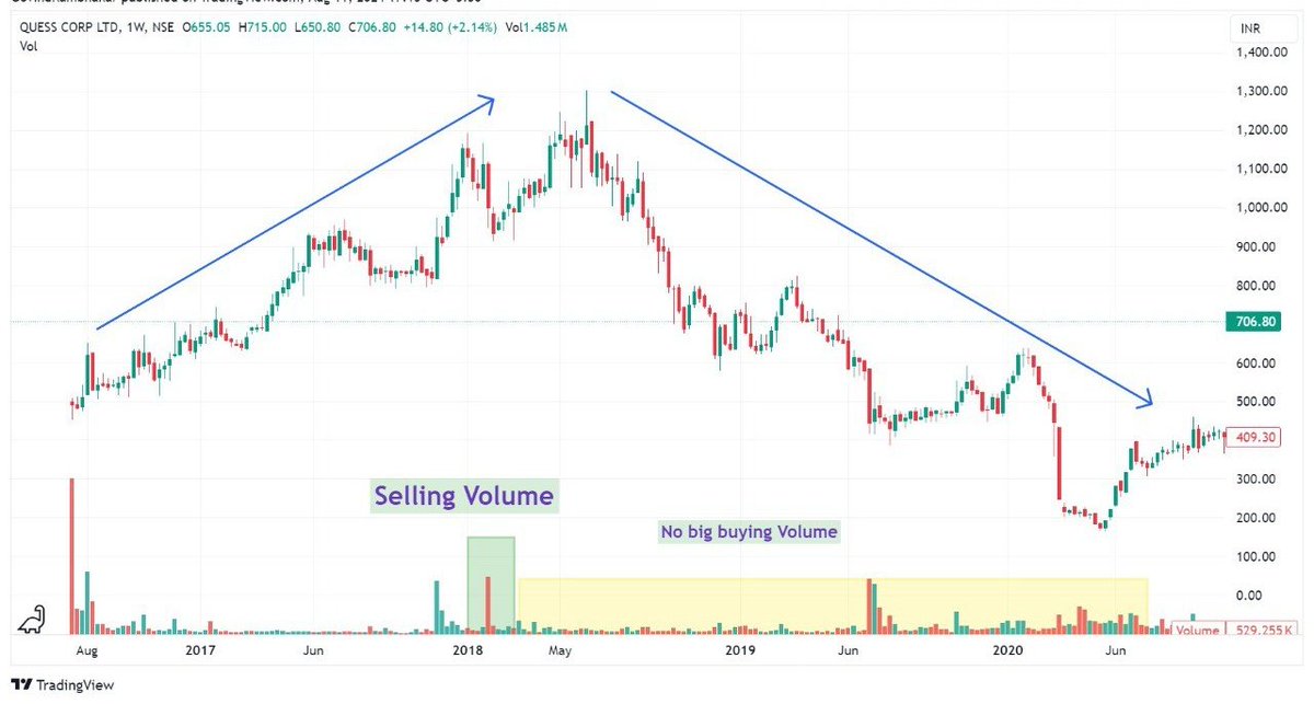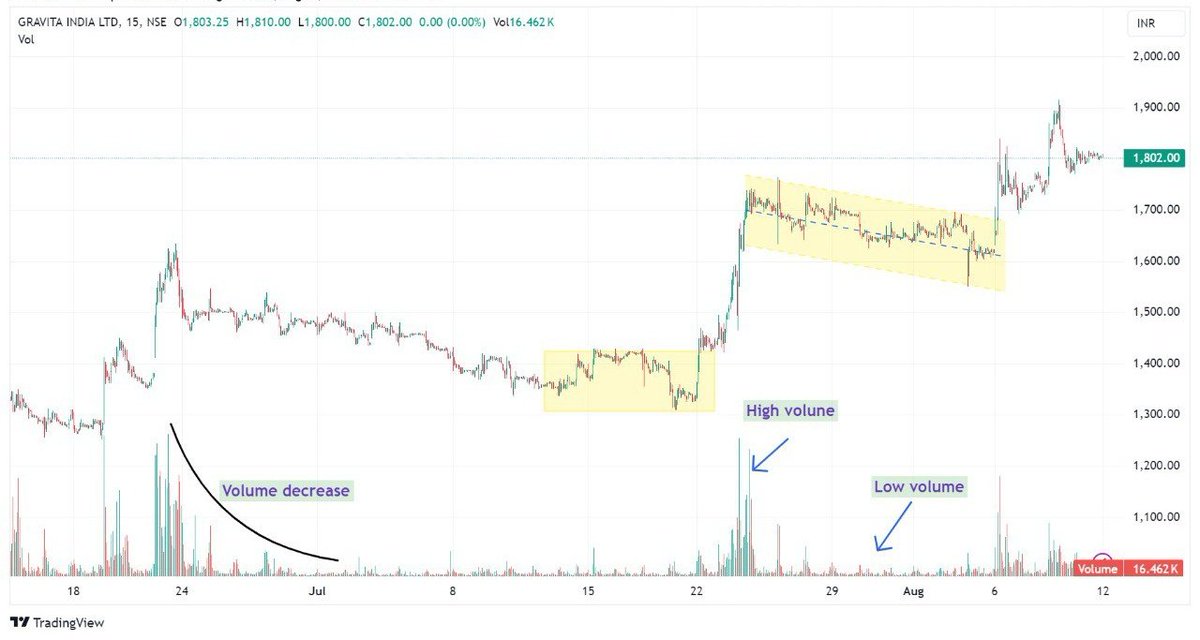 🔸Price increases + volume decreases = Fake upmove) sideways