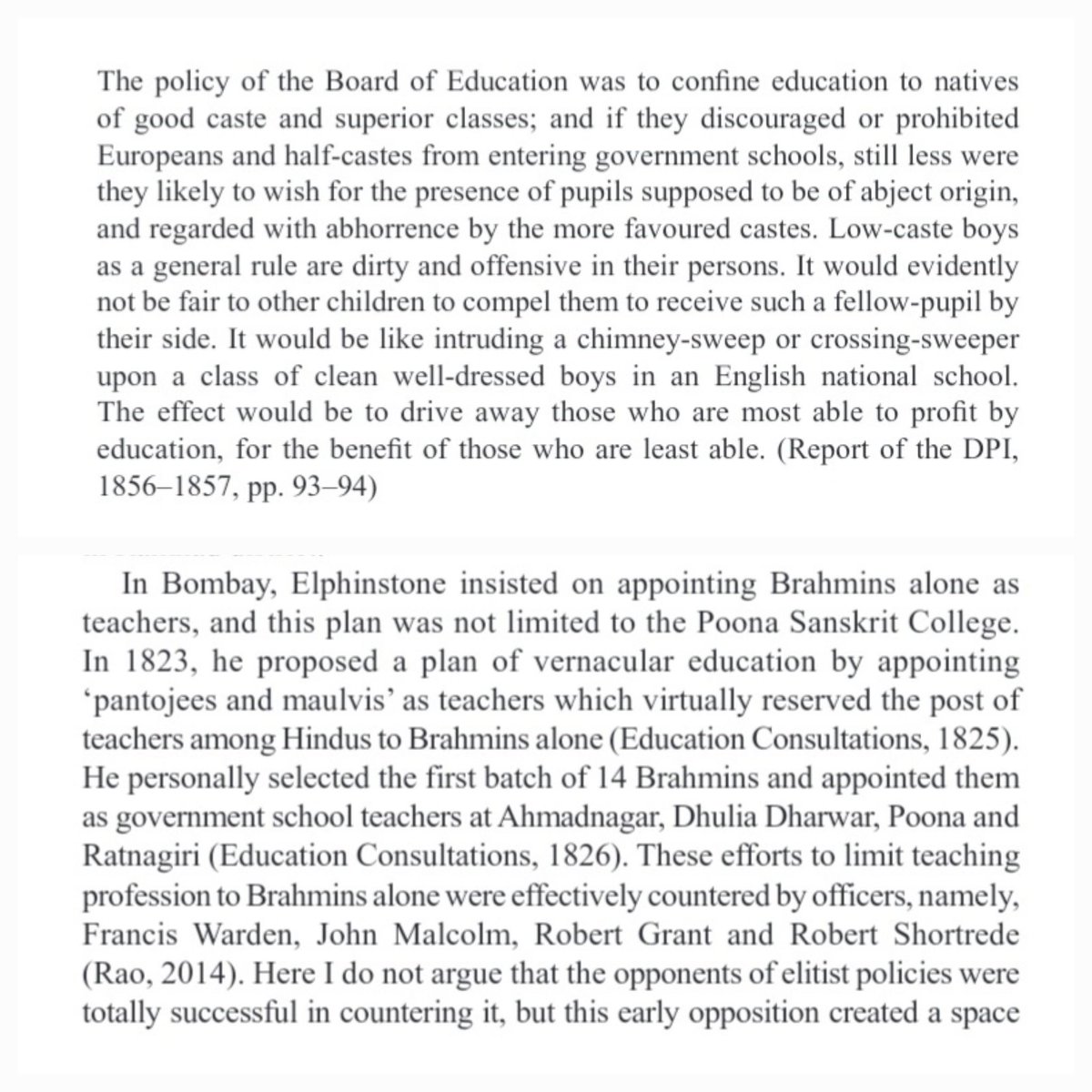 -Elphinstone, Lieutenant Governor of Bombay, insisted on recruiting only Brahmins as teachers.