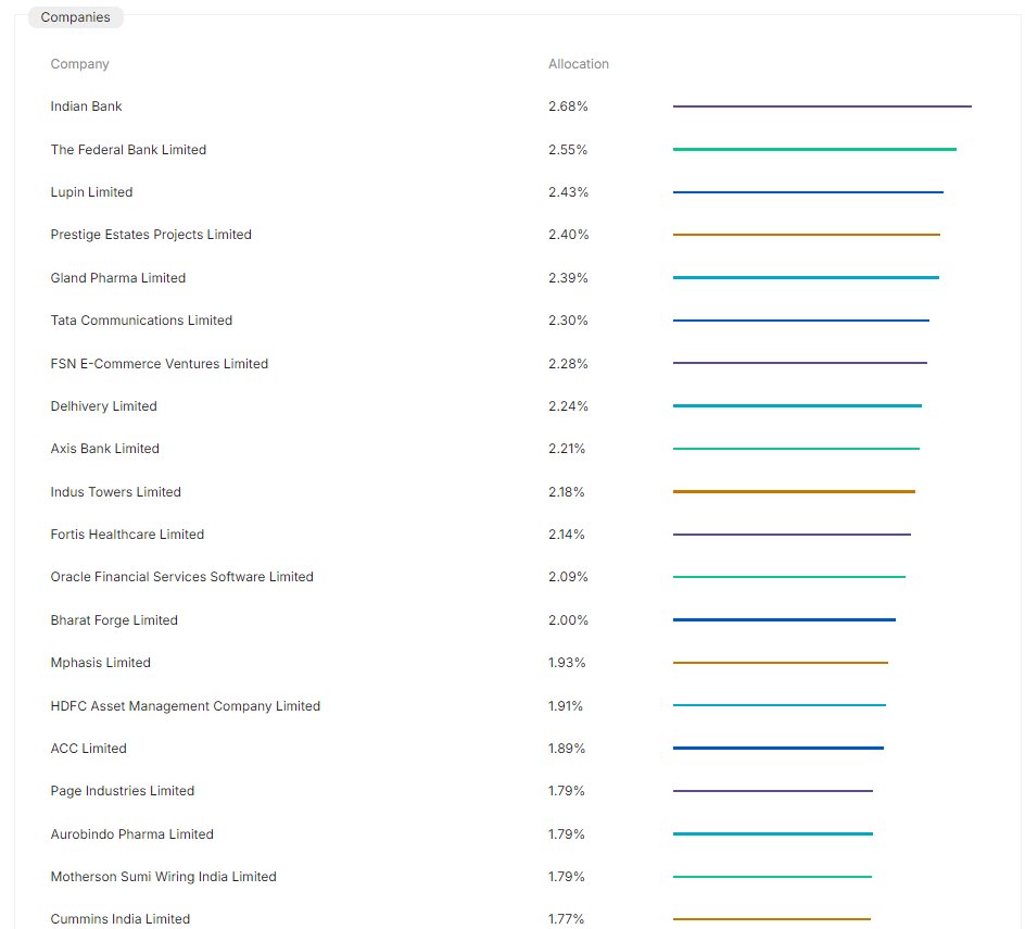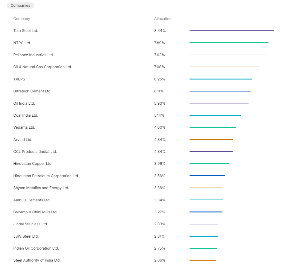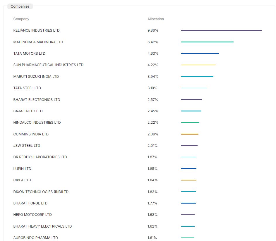 A recently launched yet a good futuristic sector to bet on. They almost have all the heavyweights but a few mid and small-caps as well. Mainly, their allocation looks highly diversified.