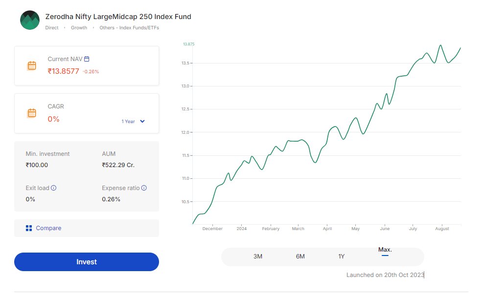 8. #ZerodhaNiftyLargeMidcap250Fund - CMP NAV 13.8577
