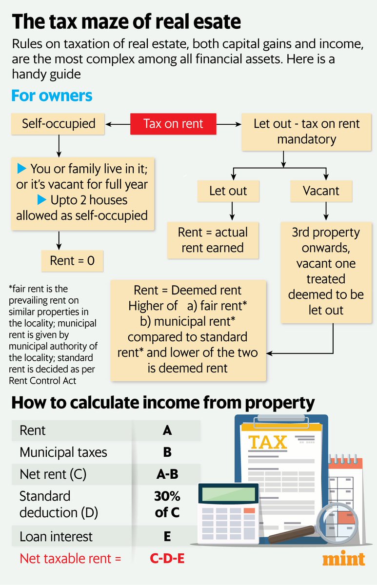 Today @Shiprasorout has compiled a superb guide to tax on real estate - rent, loan benefits & capital gains. Read & bookmark this π§΅ Our article also has FAQs, link in the thread.
