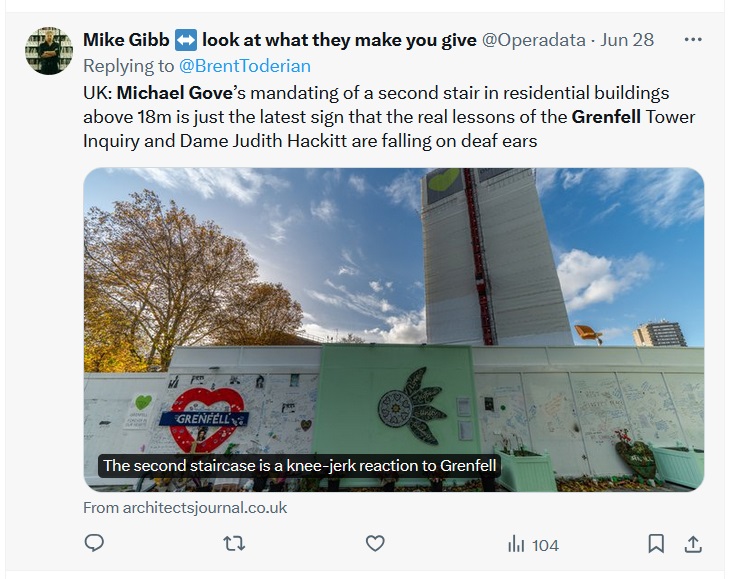 In April 2023, the London Fire Brigade issued an enforcement notice to Block Management UK, the management company for the building, urging it to review its fire risk assessment and emergency plan and implement preventative measures.
