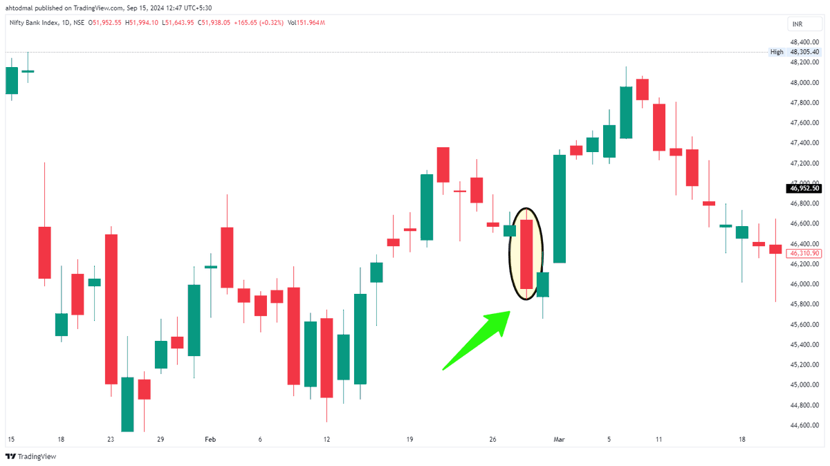 Bank Nifty was in a small range, then the market formed a perfect bearish engulfing pattern.