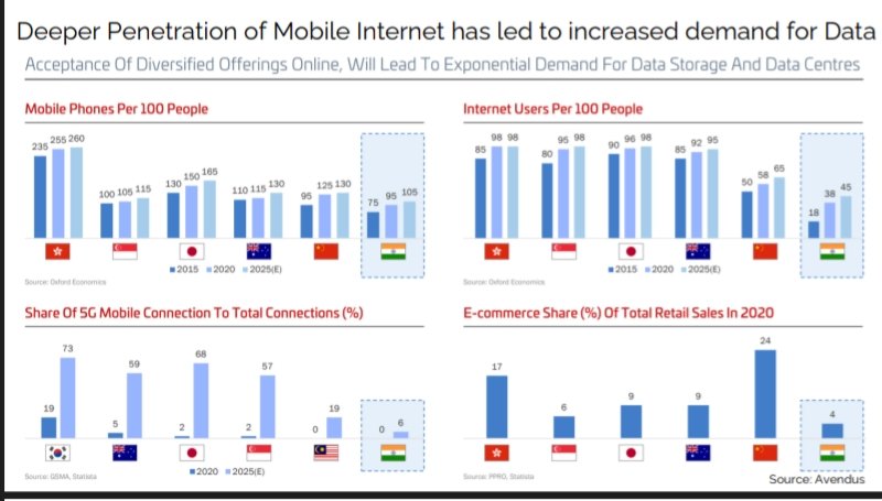 SPLIT in TIER-2 city 7 major cities account of more than 90-95% of the total deemed & supply in india . Led by Mumbai & Chennai ( 60% share ) dence under sea cable Ecosystems. Deeper penetrations of mobile internet led to increase demand for data.