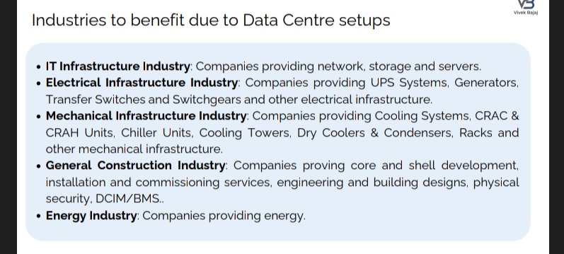 Industries to benifit due to data centre setup 1. IT infrastructure
