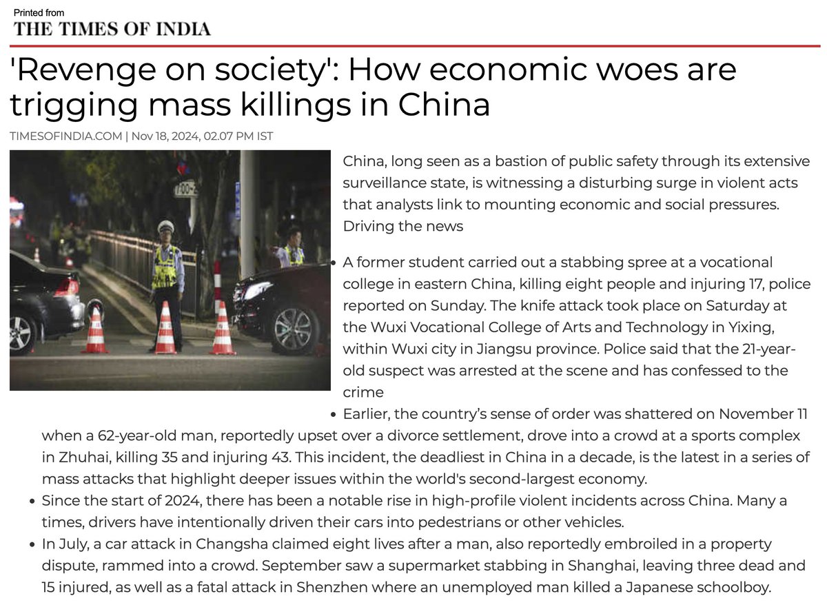 The propaganda facade about China being particularly safe is now clearly cracking. China is a nation of increasingly desperate repressed people who are being pushed to their psychological limits, many of them are now resorting to "revenge against society" violence. x.com