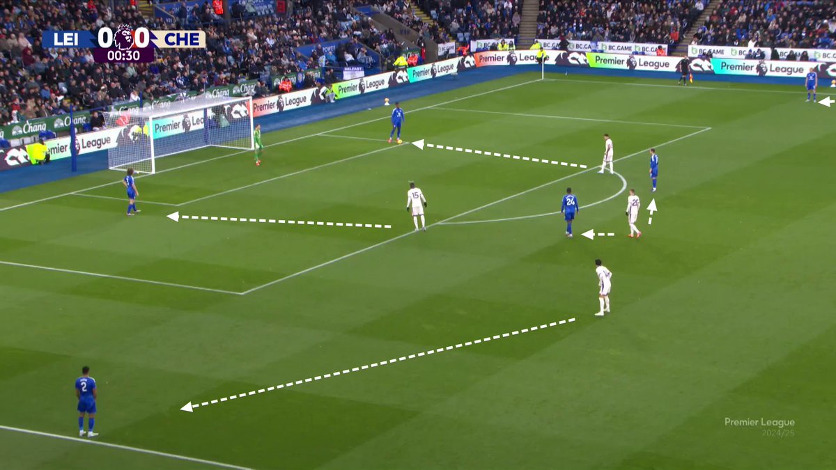 Instead of Cucurella inverting into the pivot (which Leicester would have prepared for), he played on the last line with FΓ©lix inside.
