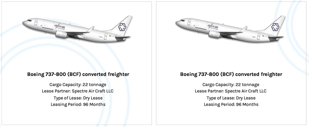 - 2 Boeing 737-800 BCFs on an 8-year dry lease from Spectre Air Capital, Ireland.