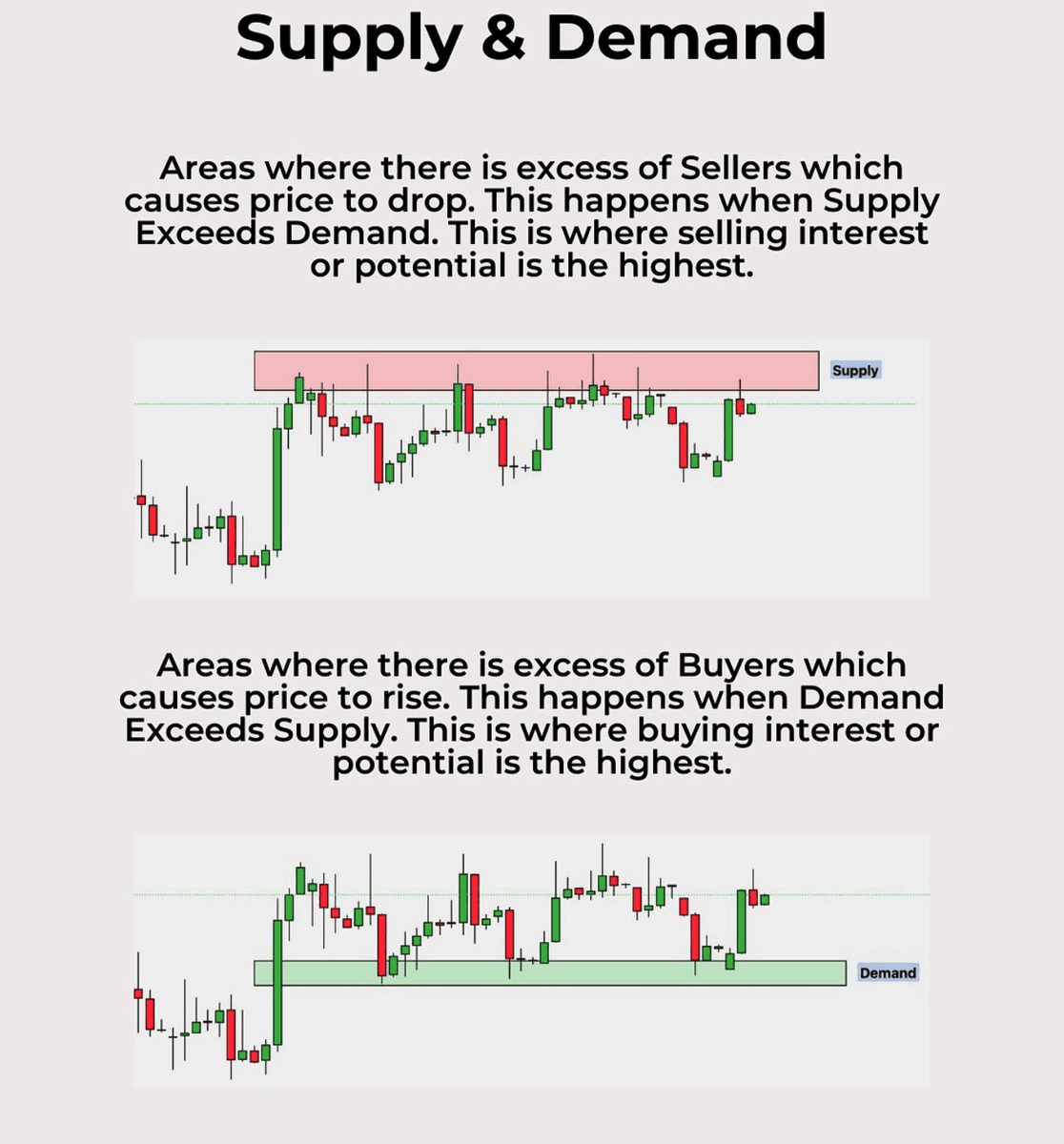 In a Demand zone, there is an excess of buyers, causing the price to rise. This occurs when demand exceeds supply. x.com