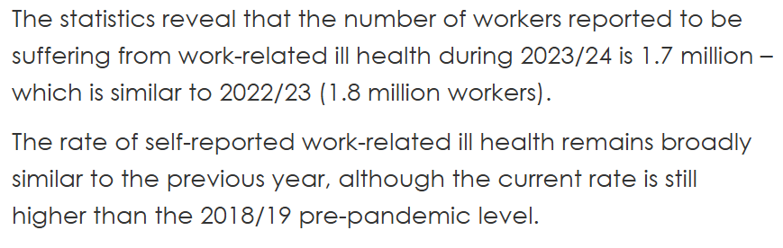 1.8 million workers reported work-related ill health last year. Half suffer from stress, depression, or anxiety.