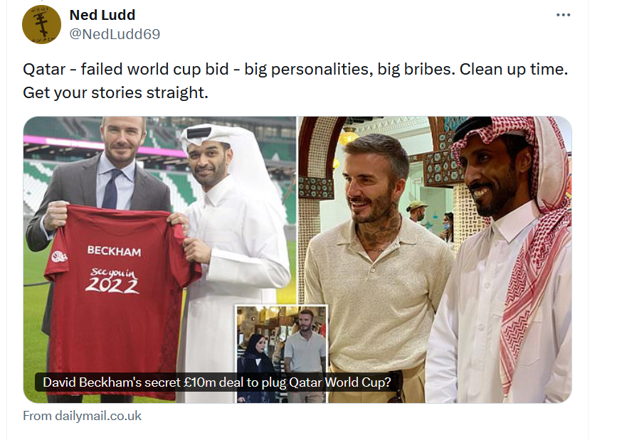"despite Beckham’s winning smiles, a storm is growing ever-larger over Qatar’s appalling human rights abuses, which form the unacceptable backdrop to next year’s [World Cup]. x.com